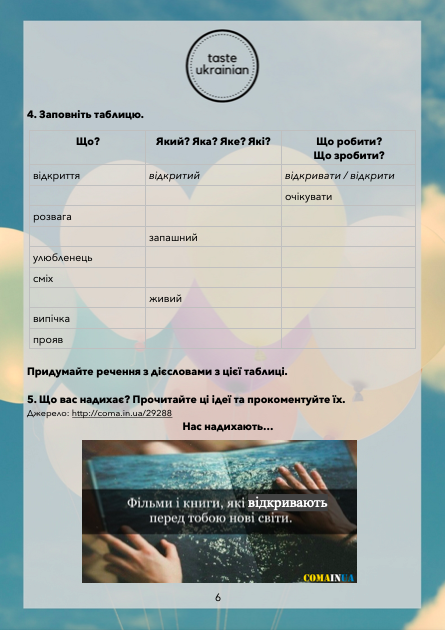 A writing task (есе "Що мене надихає?)