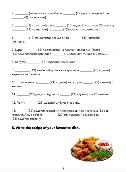 A free worksheet that teaches you the cooking words and grammar that you need to read and tell your favourite recipes.